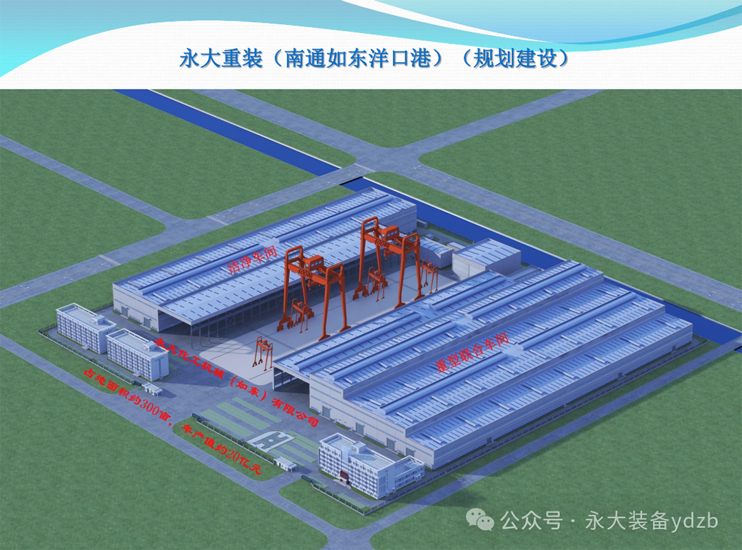 永大(如東)重型化工裝備項目總投資10億元,占地272畝,總建筑面積約12萬平方米,預計2025年12月竣工投產。建成后以專、大、重型產品為主,以海上平臺撬裝、工藝包撬裝為特色服務海內外業主,結合金牛碼頭的海運優勢實現年產6萬噸以上重型化工裝備,建成后年產6萬噸重型裝備,全面達產后可實現應稅銷售11億元,稅收9000萬元左右。